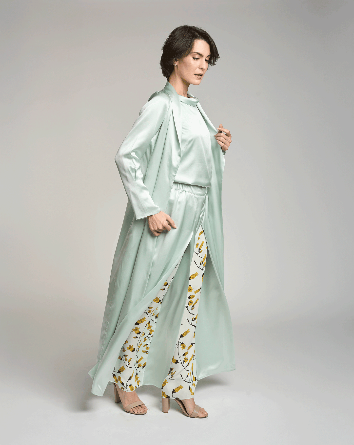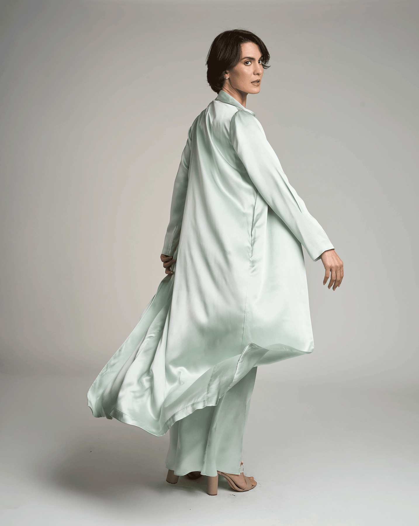 It may be helpful to compare these product measurements to a similar garment you already own. To do this, place the garment on a flat surface and take all measurements from the outside.