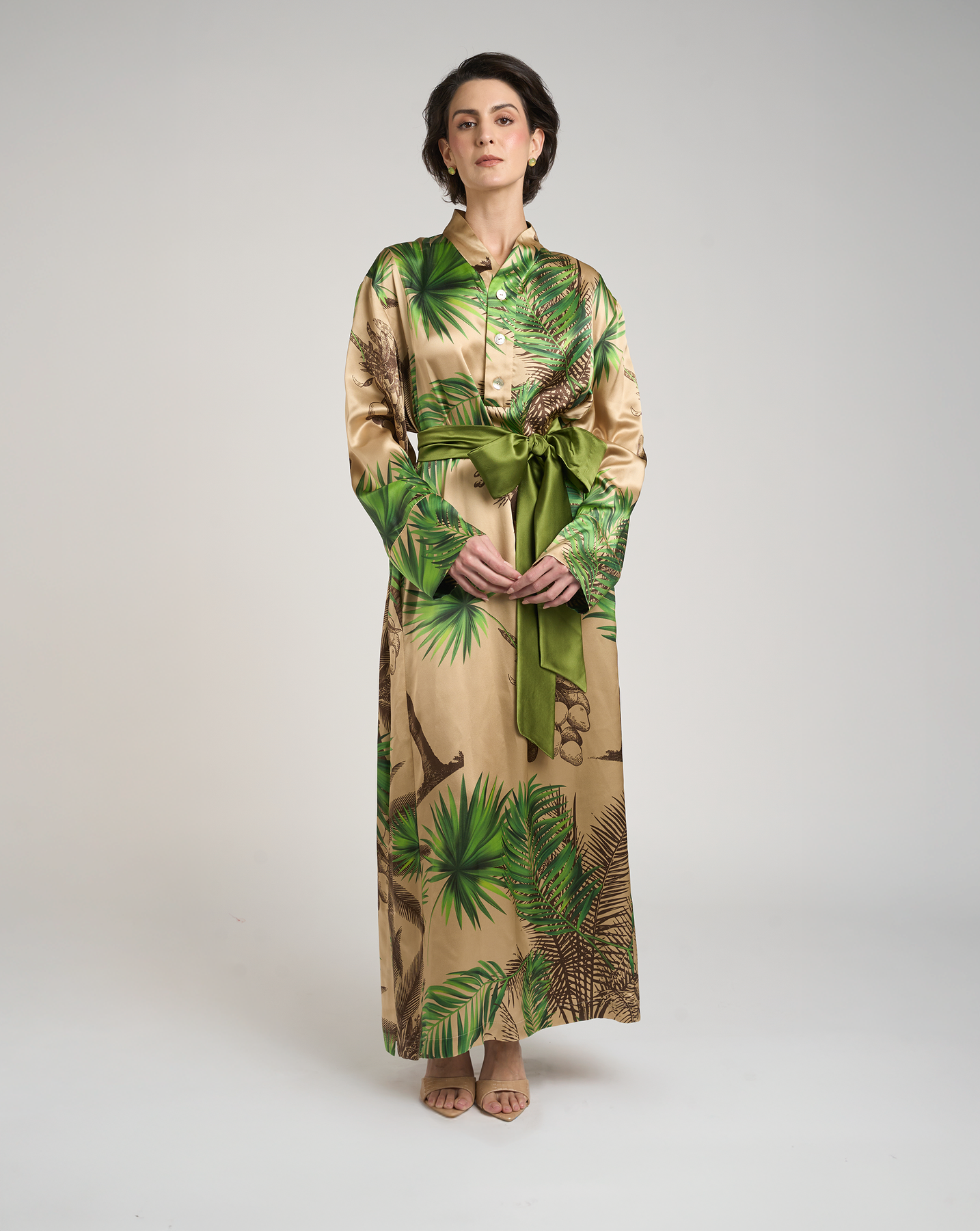 Silk shirt dress with timeless elegance.