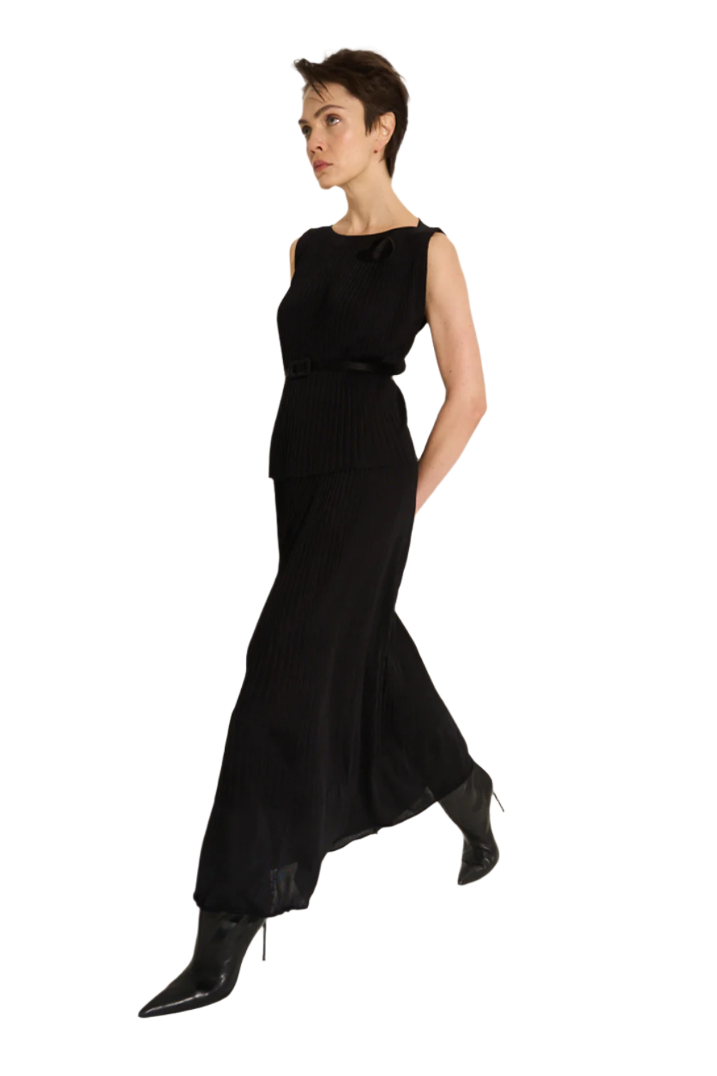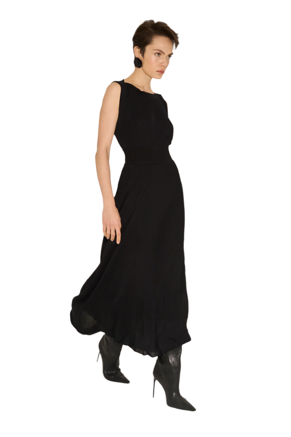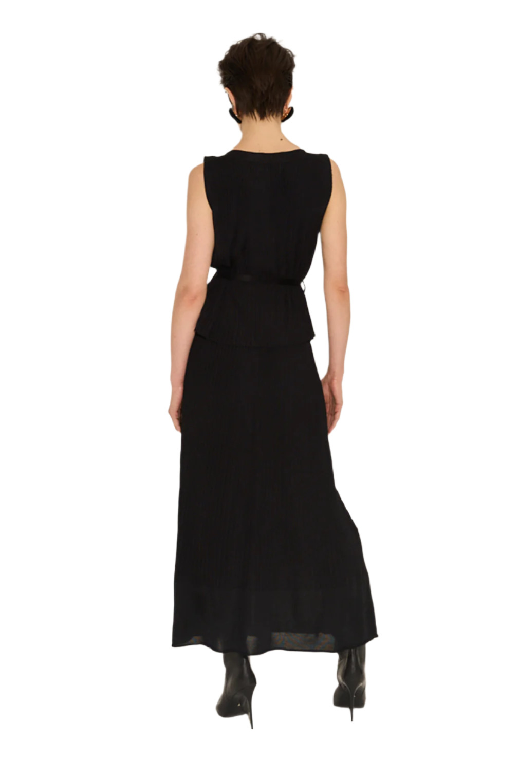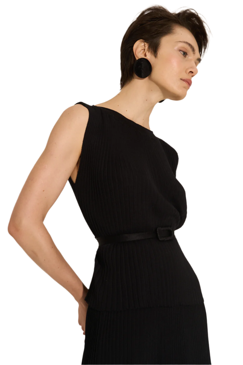 Ribbed tank top with sculptural boat neckline.