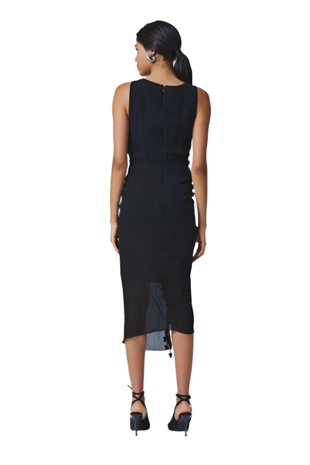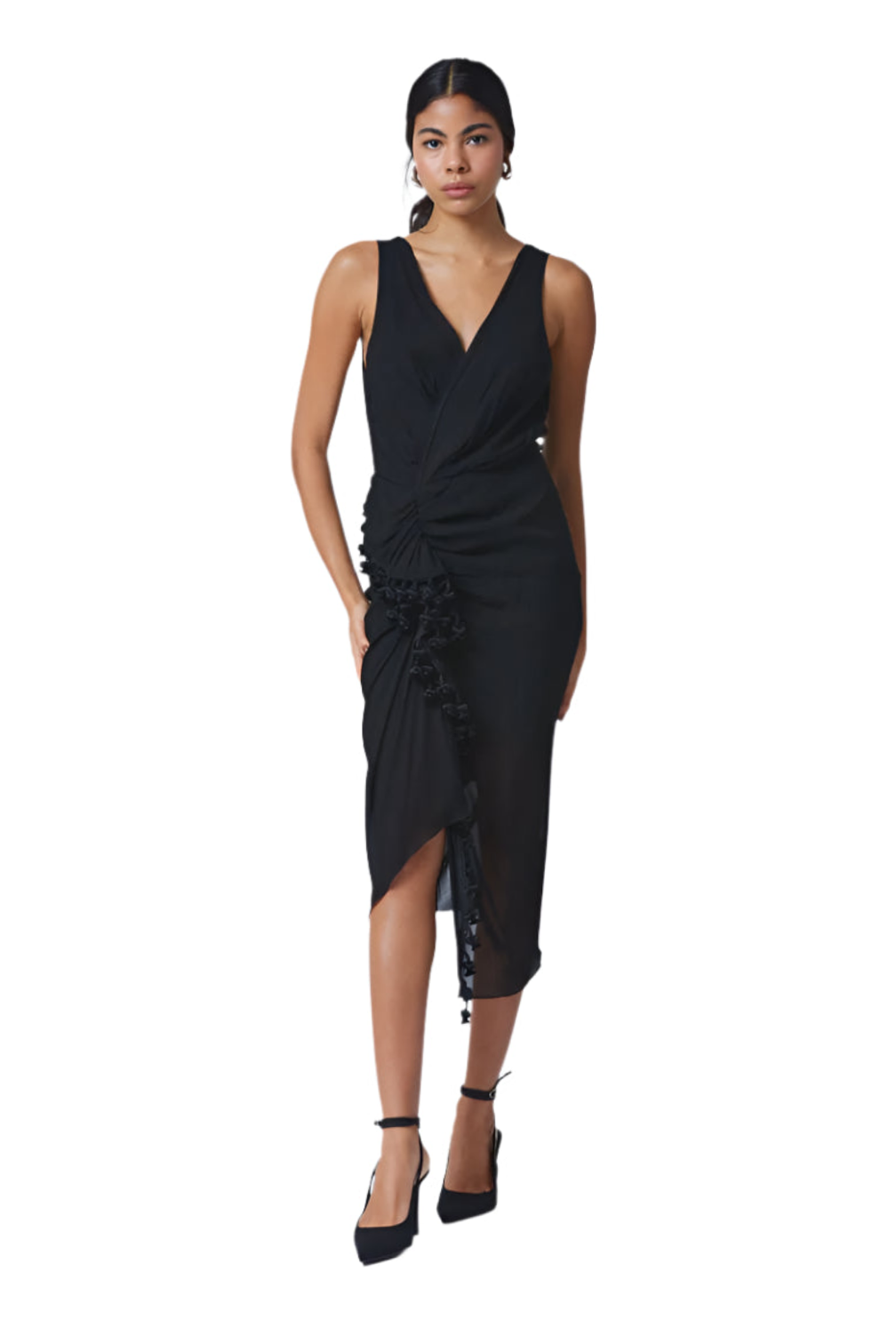 Flowing midi dress with flattering V-neckline.