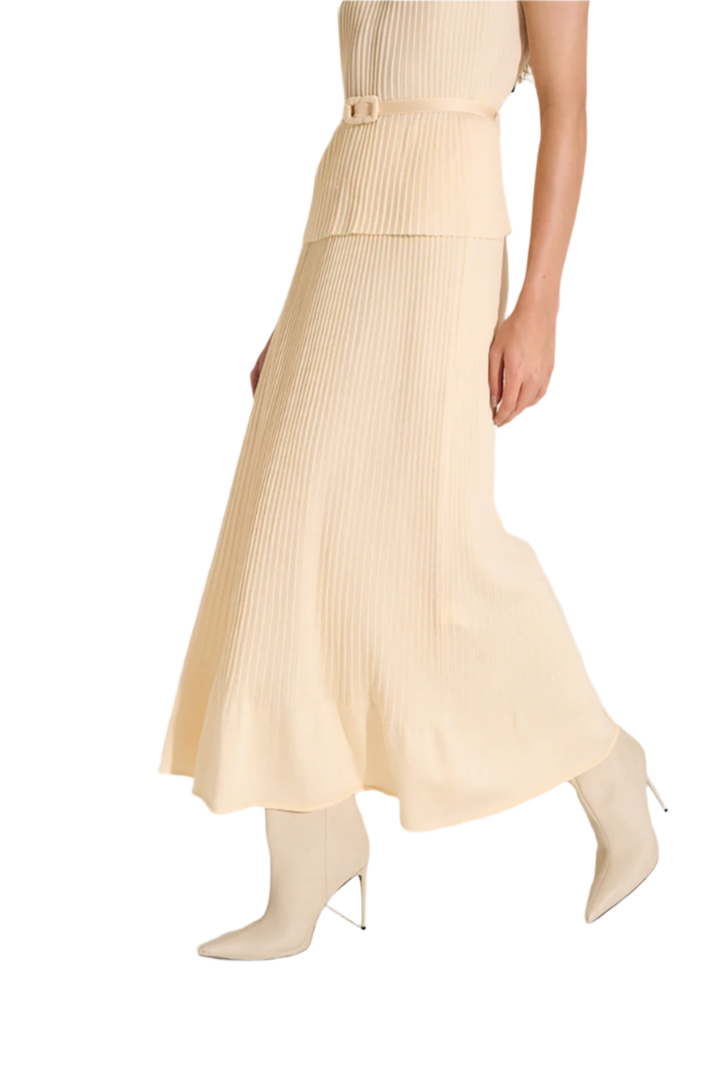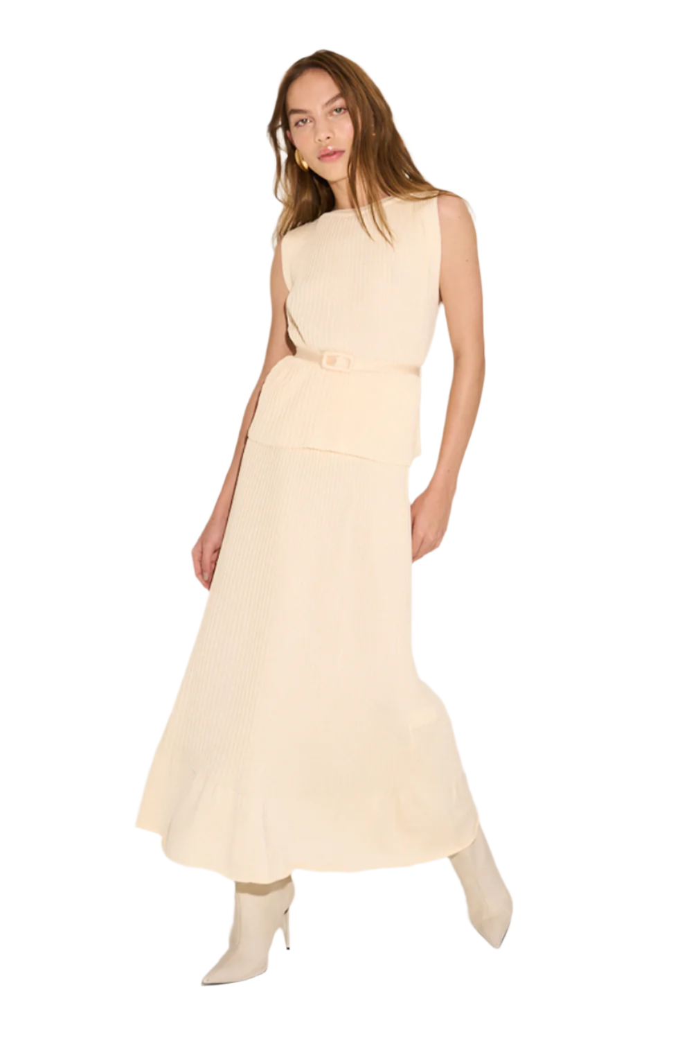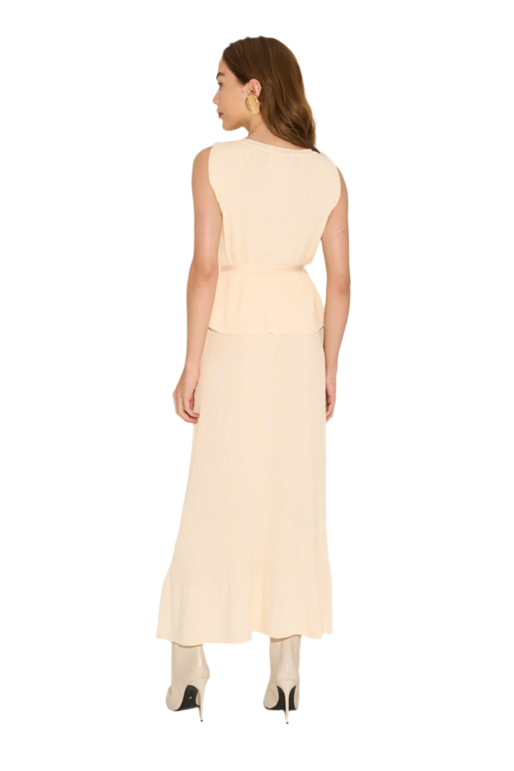Ribbed tank top with sculptural boat neckline.