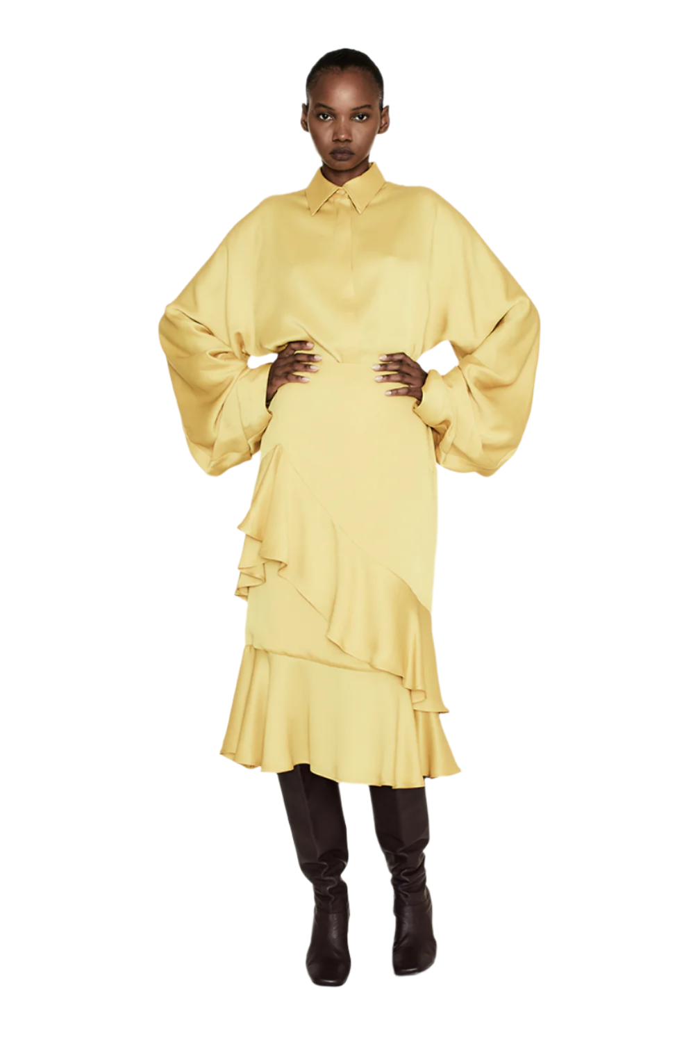 Draped shirt with flowing long sleeves.