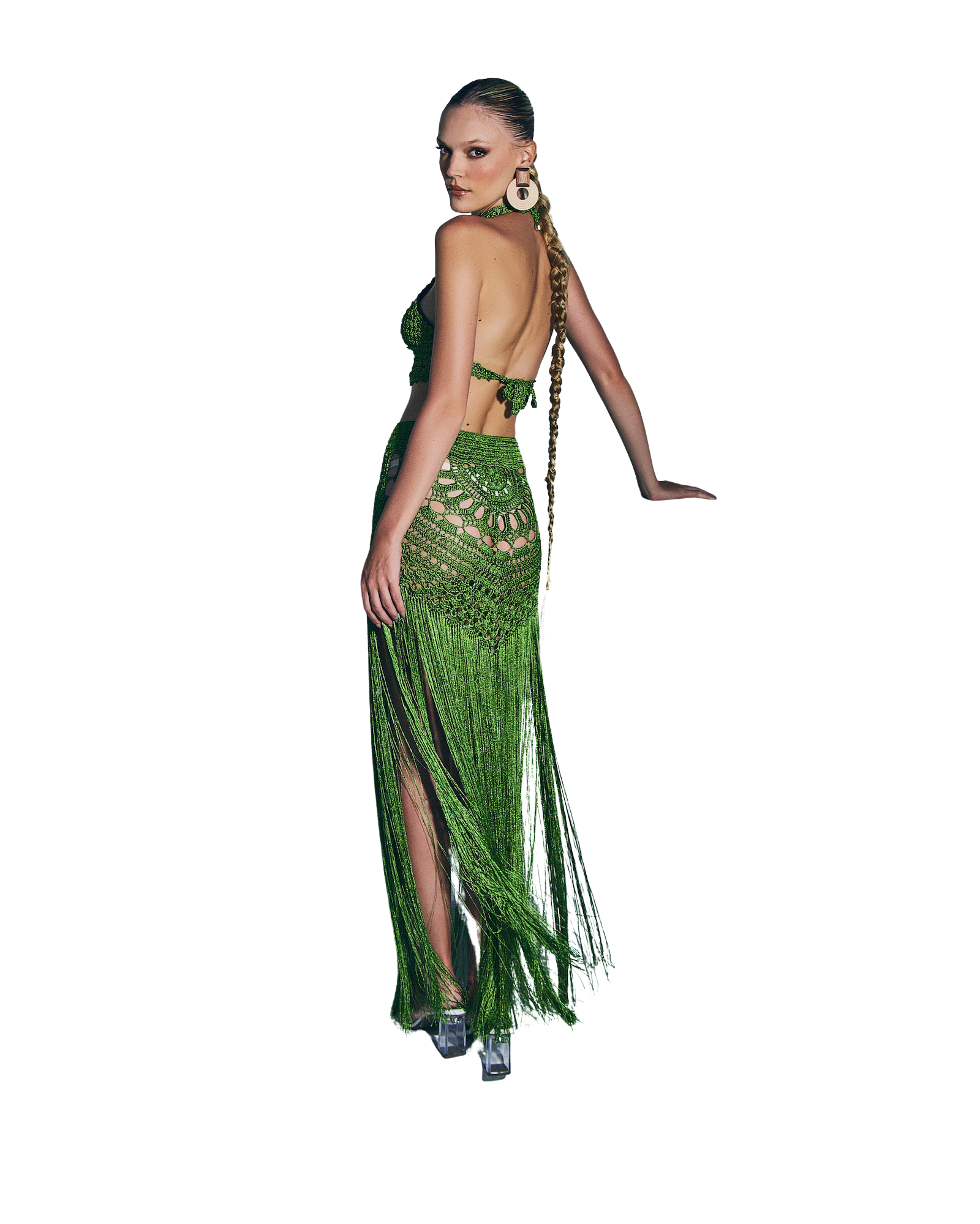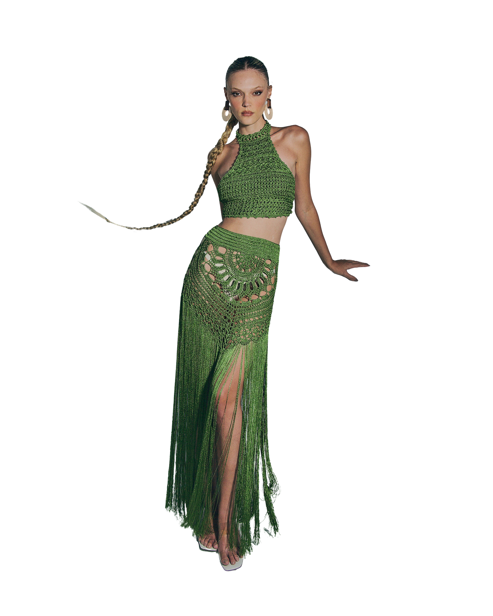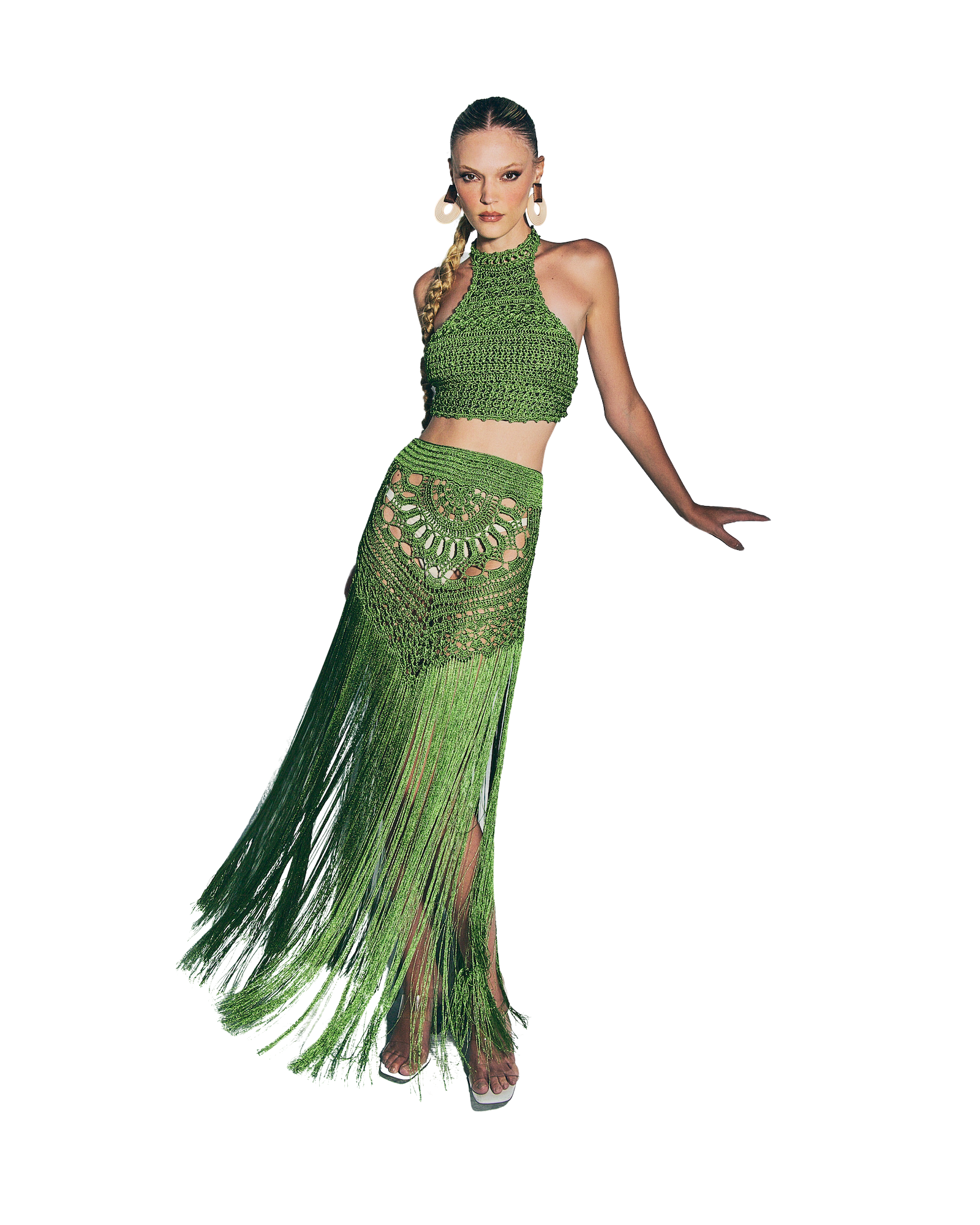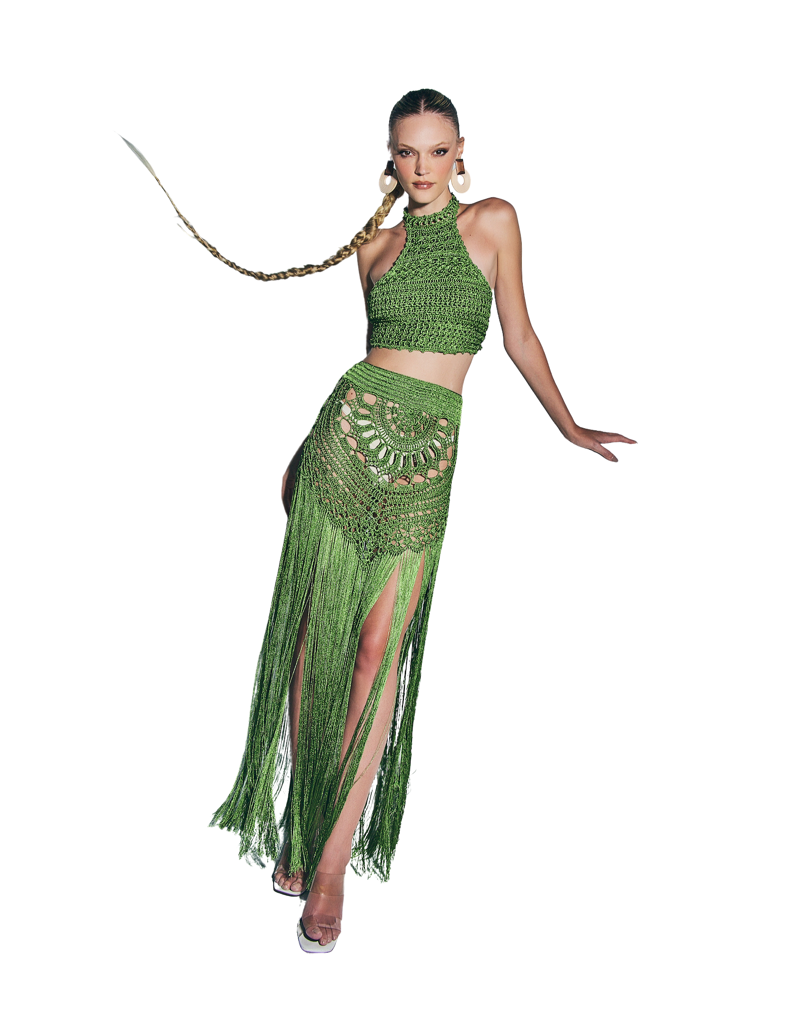 The Be Tulum Skirt enchants with the lightness of its flowing fringes placed manually in meticulously crafted work. It has elastic at the waist and a mandala on the hip, trademark of Ammi pieces, which gives it an unmistakable look. The Be Tulum Skirt does not include lining and should be worn with hot pants or underwear in the same color or nude. The mandala is a symbol of harmonization, capable of transforming the energy of both people and environments. We believe that through mandalas things can be processed and move forward to their degree of evolution.