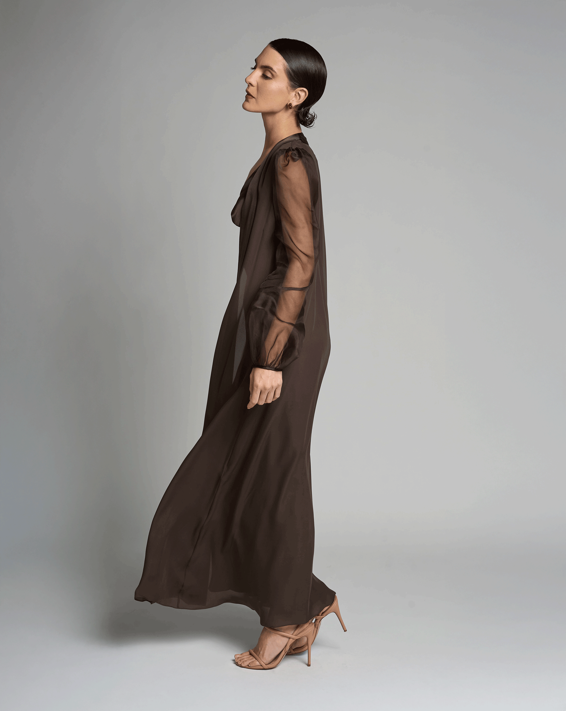 Its sheer sleeves and rich, smoky hue create an air of refined sophistication. Designed to pair flawlessly with the GRACE SLIP, this robe offers the ultimate indulgence in timeless style.