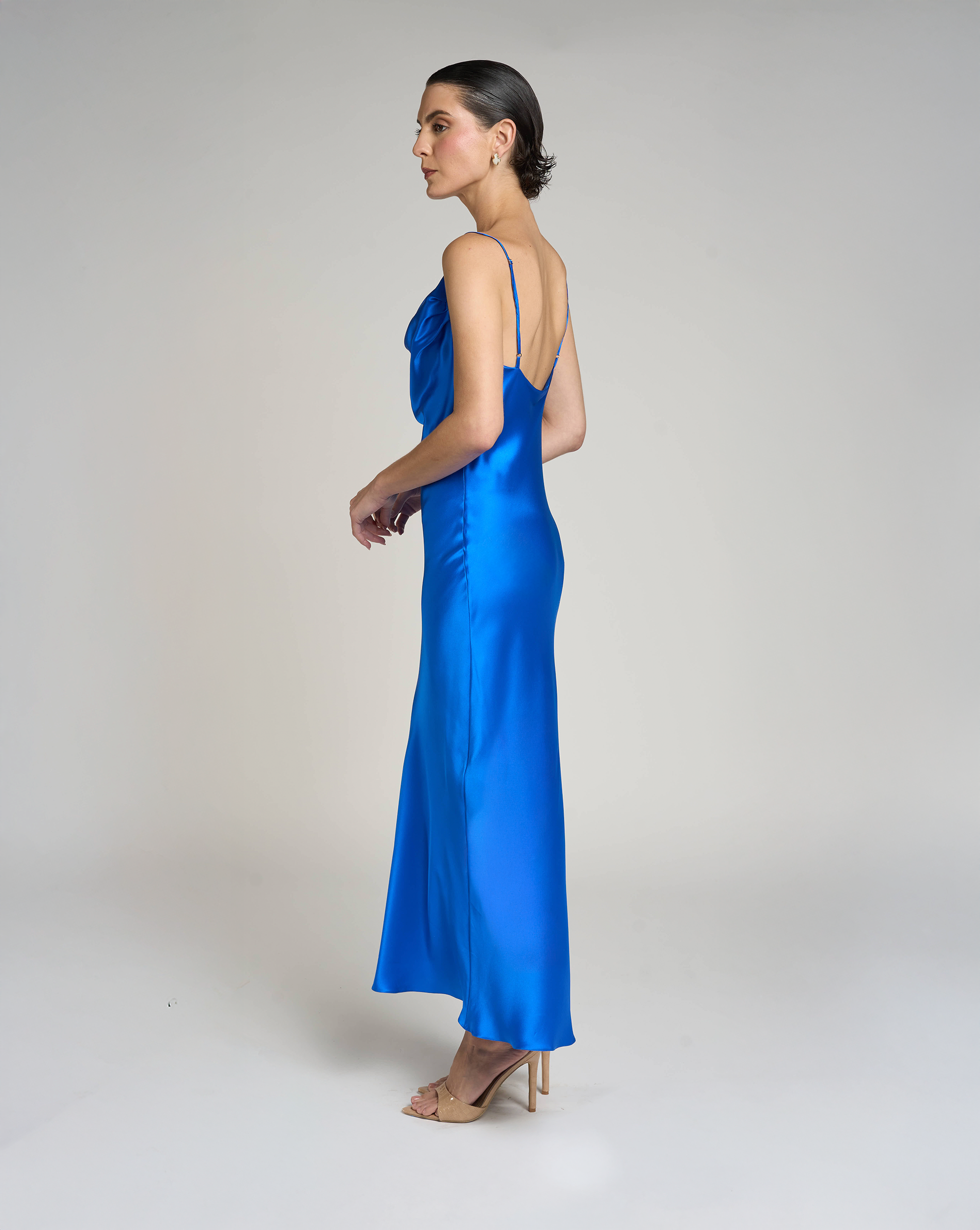 Featuring a square neckline, adjustable straps, and a subtly draped cowl back, it offers an effortlessly sophisticated silhouette.